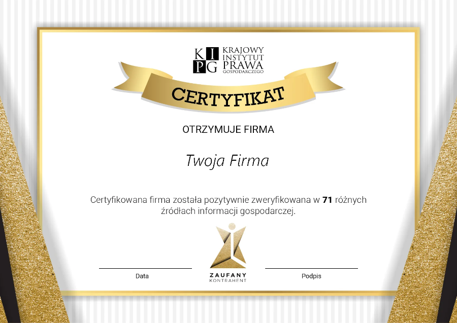 CERTYFIKAT ZAUFANEGO KONTRAHENTA